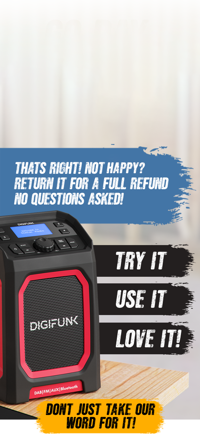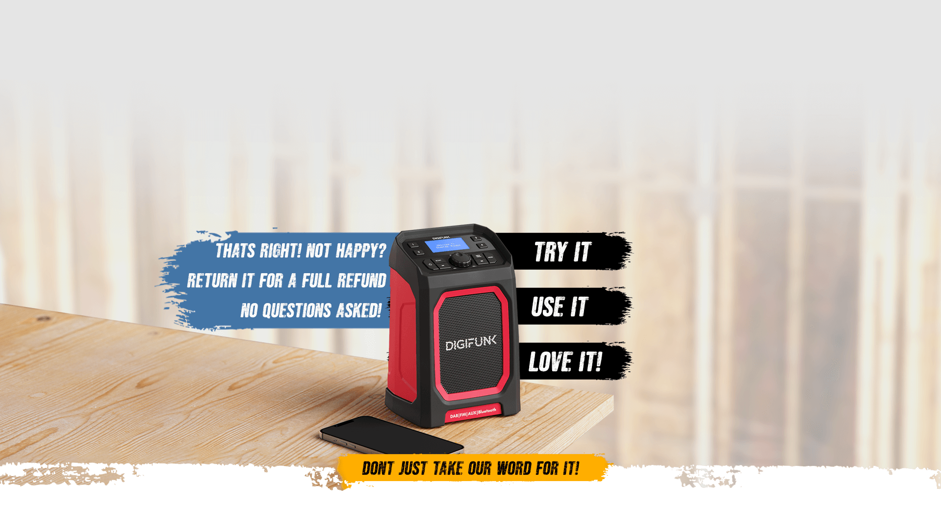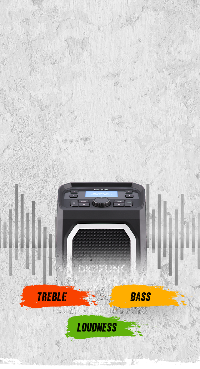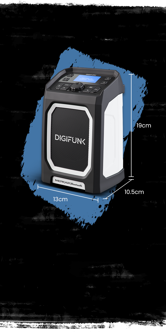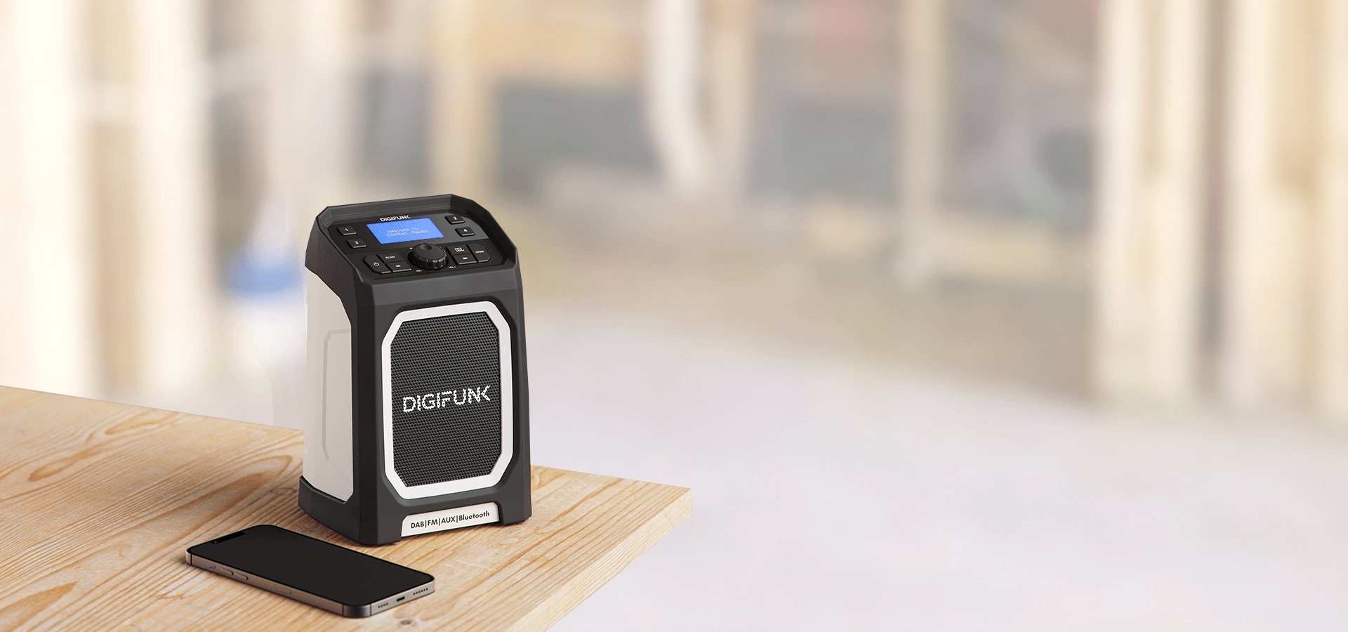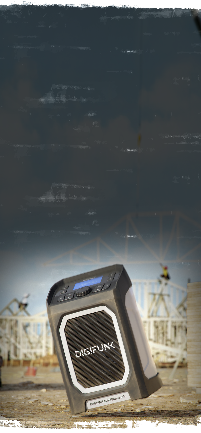 With the DigiFunk Site Radio by your side you can play your favourite songs and radio stations no matter where your work takes you